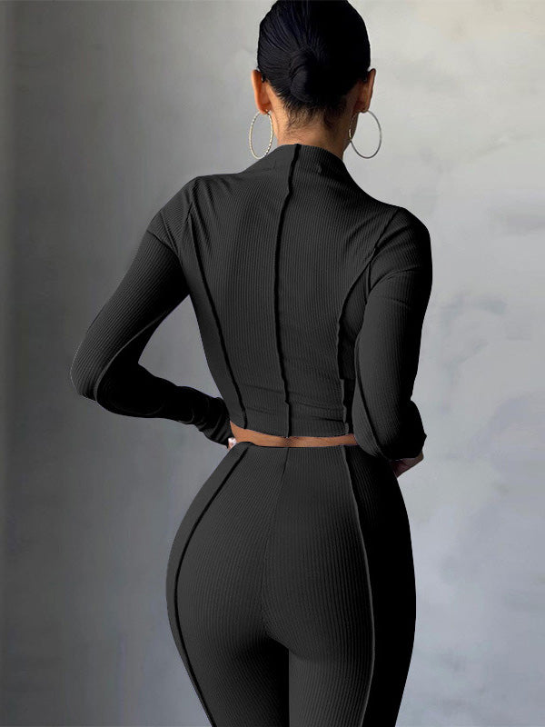 Patchwork Cropped Top And Long Pant Sets
