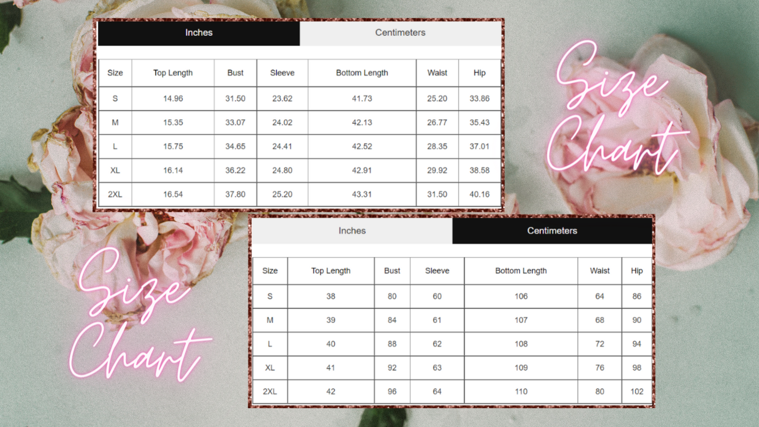 Allow 3-4 cm (1.8''-1.57'') difference due to manual measurement.