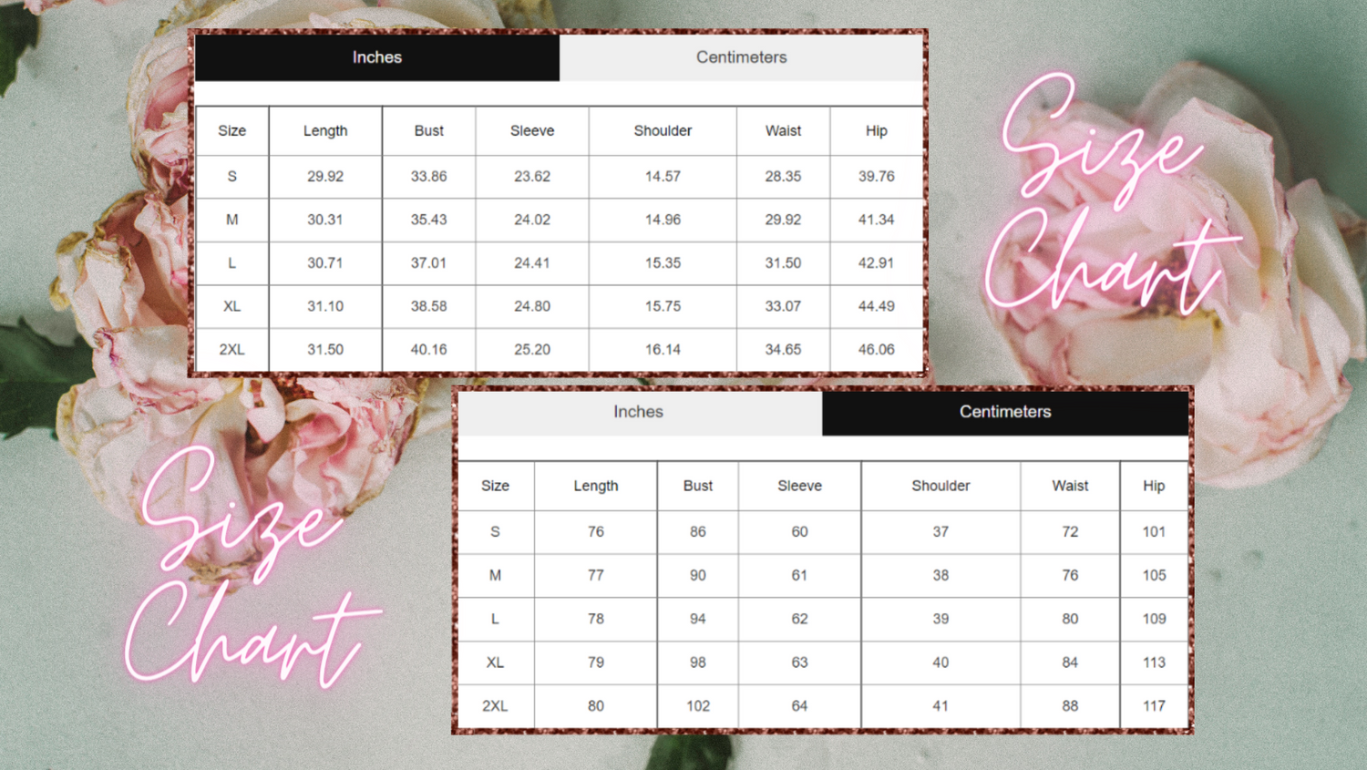 Allow 3-4 cm (1.8''-1.57'') difference due to manual measurement.