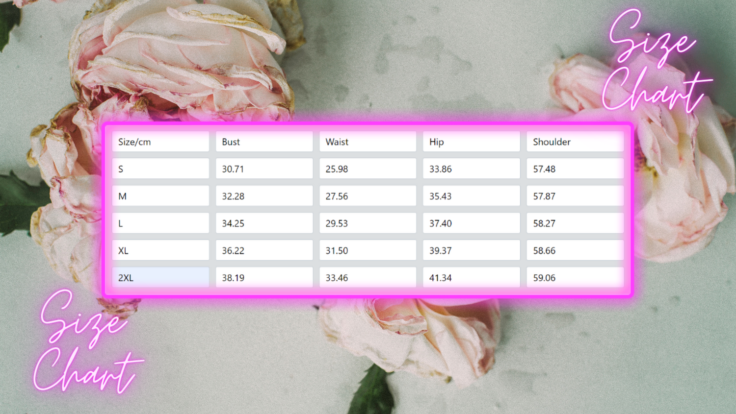 Allow 3-4 cm (1.8''-1.57'') difference due to manual measurement.